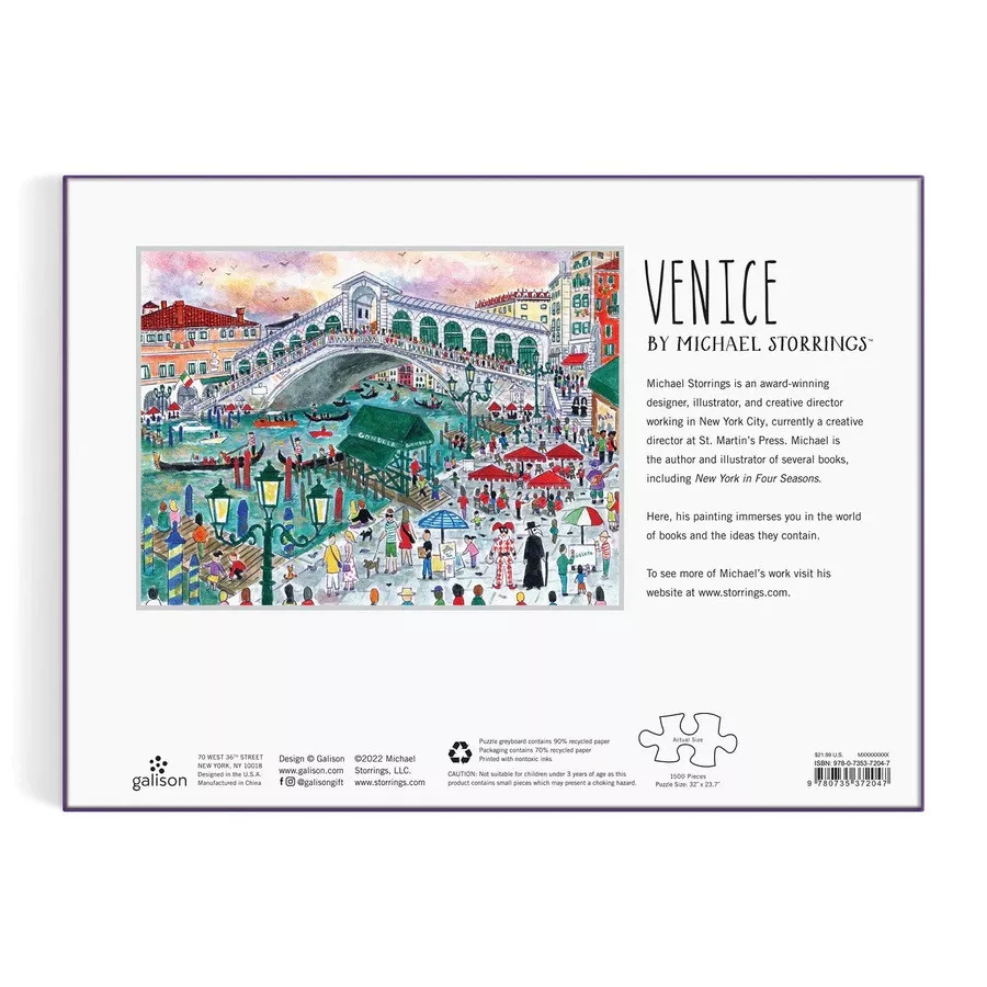 Ez az 1500 darabos puzzle a velencei Rialto hidat mutatja be Michael Storrings látványos stílusában. A részletgazdag városi jelenet hosszabb, elmélyült kirakást kínál, így különösen jó választás azoknak, akik szeretnek időt szánni a nyugodt kikapcsolódásra. A kész kép igazán mutatós, ezért az egész folyamat örömteli és inspiráló.