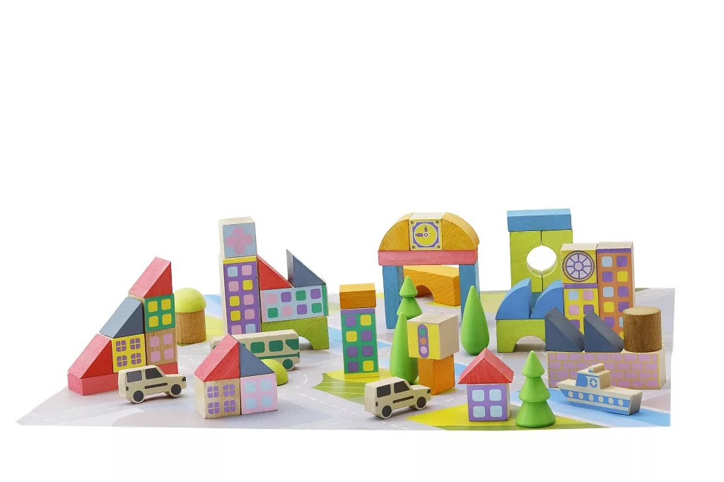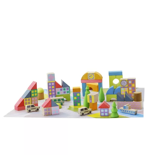 Ez az 50 darabos város építőkocka készlet színes elemeivel és egyszerű fa járműveivel igazán izgalmas játékot kínál. Gyermeked saját kis várost építhet belőle, miközben újabb és újabb jeleneteket találhat ki a mindennapi játék során.