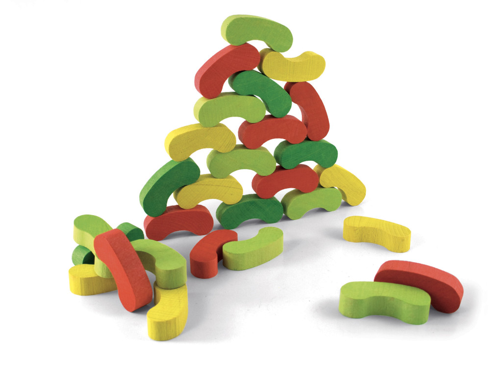 Ukladajte fazuľky na seba tak, aby pokladaná bola vždy rozdielne farby než dvojica pod ňou. Kto stavbu zhodí, prehral. Trénujte hrou jemnú motoriku a sústredenie. Vyrobené vo Francúzsku, z masívneho bukového a borovicového dreva francúzskeho pôvodu. Súčasti sú ošetrené výhradne za použitia farieb a lakov na báze vody. Balené v kartónu potlačenom rastlinnými atramenty.   Hlavné vlastnosti:60 dielikov z masívneho drevavyrobené vo Francúzsku