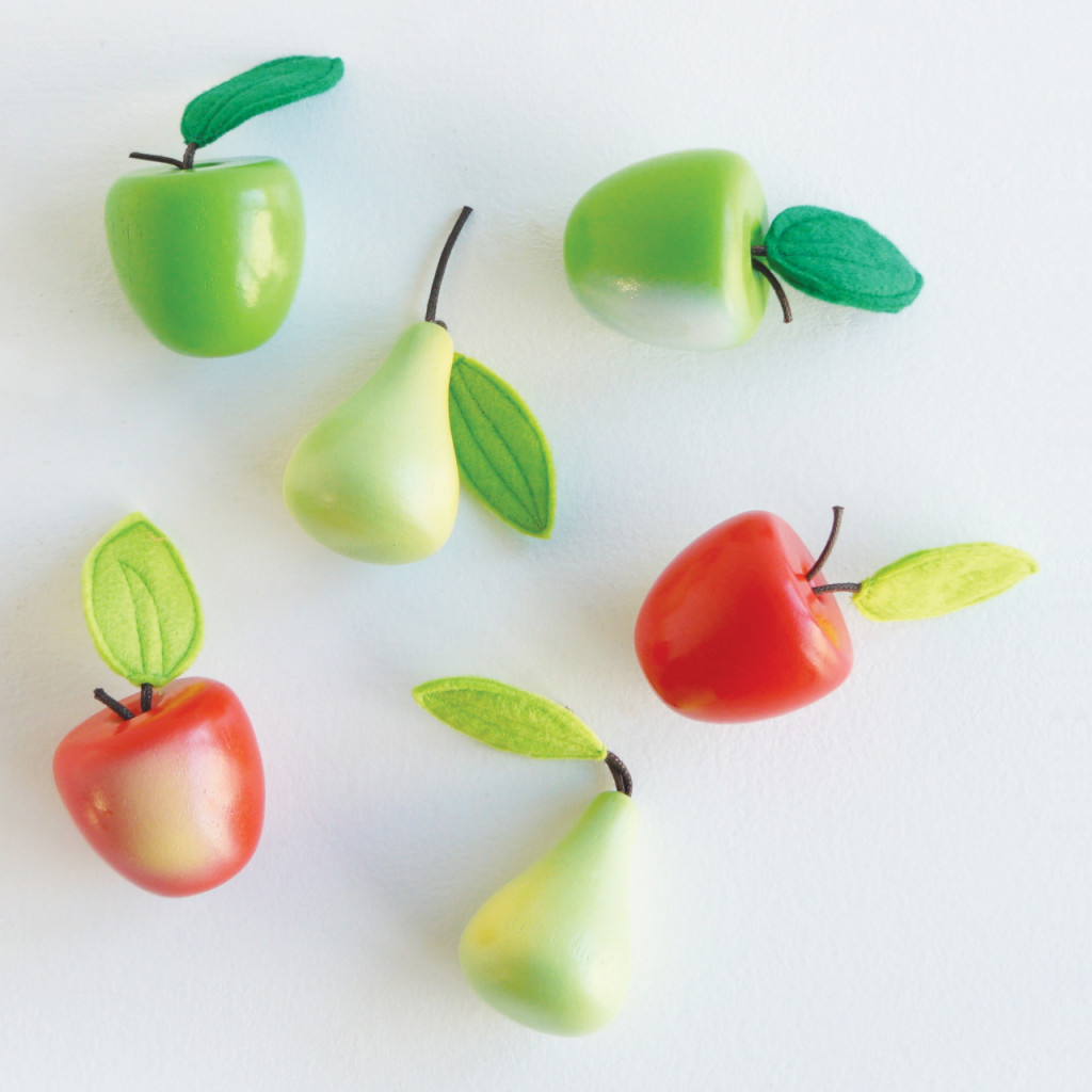 Le Toy Van - Almás-körtés láda: Piaci hangulat a gyerekszobában. A fa rekeszben 2 piros és 2 zöld alma, valamint 2 körte lapul - hímzett filc levelekkel és plüssszárakkal. A fogantyús láda könnyen hordozható, jól kombinálható a többi Honeybake „élelmiszeres” kiegészítővel. A játék során beszélgethetünk a gyümölcsökről, egészséges táplálkozásról, miközben fejlődik a kézügyesség és a szókincs. Fenntartható fa, vízbázisú festés, időtálló minőség.