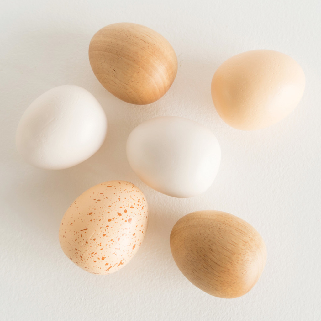 Le Toy Van - Farm tojások ládában: Strapabíró fa rekesz 6 darab, kézzel festett „farmtojással”. A kis fogantyúk könnyű hordozást adnak, a tojások mérete pont jó a kis kezekhez. Játék közben beszélgethettek az ételekről és az egészséges reggelikről, miközben fejlődik a szem-kéz koordináció és a finommotorika. Fenntartható fa, vízbázisú festék, lekerekített élek - időtálló Honeybake kiegészítő boltosdihoz és játékkonyhához. Kombináld más Le Toy Van ládákkal és már kész is a piacos stand!