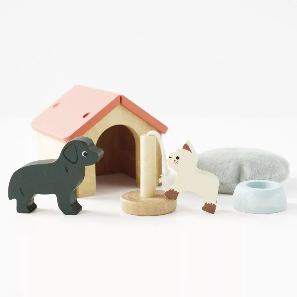 Le Toy Van - Házi kedvencek szett: Aranyos fa kutya és cica, hogy a babaházban is legyenek kis háziállatok. Történetmesélésre, empátia- és szókincsfejlesztésre kiváló. FSC-fa, vízbázisú festés.