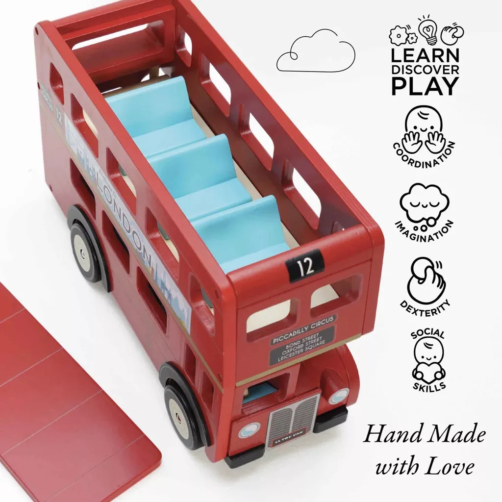 Le Toy Van - Londoni emeletes busz: Ikonikus, élénkpiros, nyitható felső szinttel és levehető tetővel, belső ülésekkel. Műanyagmentes, vízbázisú festék; díjnyertes klasszikus.