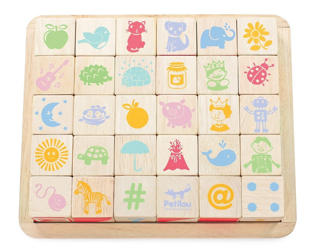 Le Toy Van Petilou - Multifunkciós betű- és számkockák (30 db): Mindegyik kocka más mintával (számok, betűk, állatok, minták). Kézzel nyomott grafikák, lekerekített élek, tárolótálcával. Műanyagmentes, vízbázisú festék. Többszörösen díjazott.