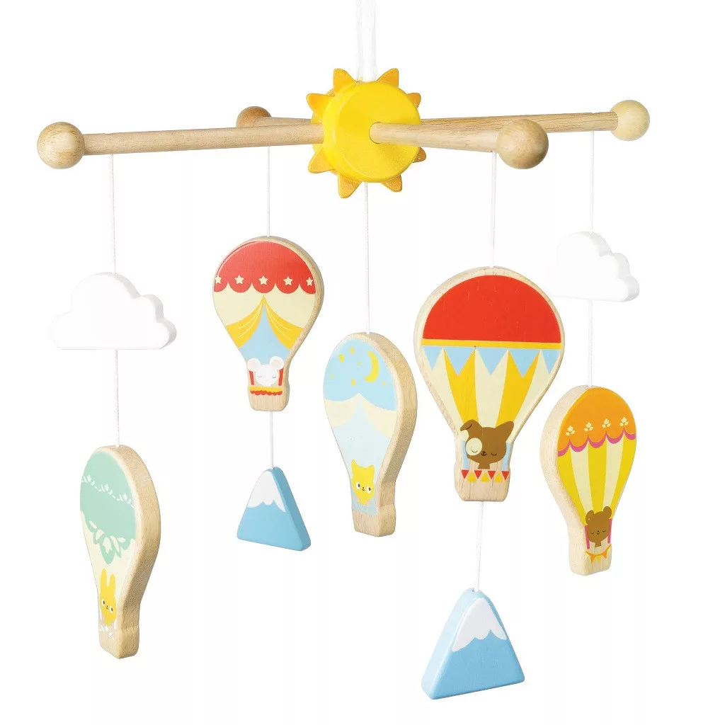 Könnyű, mégis látványos dekoráció babaszobába vagy babakocsira. A hőlégballonok a hegyek fölött lebegnek, minden darab egyedi illusztrációval díszítve. A gumifából készült elemek vízbázisú festékkel készülnek, finom kézzel festett részletekkel. A meleg árnyalatok és a bájos hangulat nyugtató környezetet teremtenek a kicsik számára.