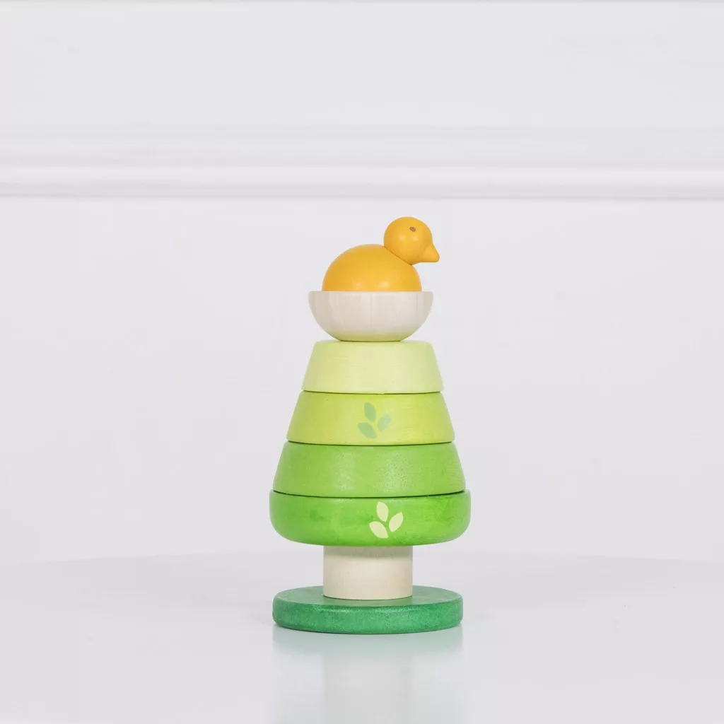Le Toy Van Petilou - Összerakható fa: Első toronyépítő a legkisebbeknek. A hat színes elem a rugalmas rögzítésű pálcára kerül, a tetején fészkelő madárkás dísz koronázza meg a játékot. A nagy, könnyen fogható darabok támogatják a forma- és méretfelismerést, a sorrendiség megértését, közben fejlődik a kézügyesség és a szem-kéz koordináció. Fenntartható fa, vízbázisú festés, biztonságos kialakítás. A Petilou kollekció része, amely játékosan vezeti be a piciket a tapintás, a színek és a mozgás világába.