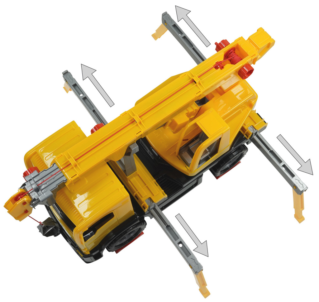 Plne mechanicky funkčné Autožeriav o veľkosti 70cm. S plne roztiahnutým ramenom dosahuje žeriav veľkosti až 115cm. Súčasti sú 4 bočné výsuvné stabilizačné nohy, ktoré zabraňujú, aby sa žeriav preváži na strany, rovnako sú súčasti kliny, pomocou ktorých je možné zabezpečiť kolesá proti pohybu dopredu alebo dozadu. Samotné rameno žeriavu možné otáčať o 270 °. Vysúvanie ramena a jeho zdvíhanie je ovládané pomocou obslužných koliesok. Samotný žeriavový hák je obsluhovaný pomocou navijaku a lanka. Statická nosnosť žeriavu je 100kg. Hlavné vlastnosti: plne mechanicky funkčnévysoko kvalitný plast
