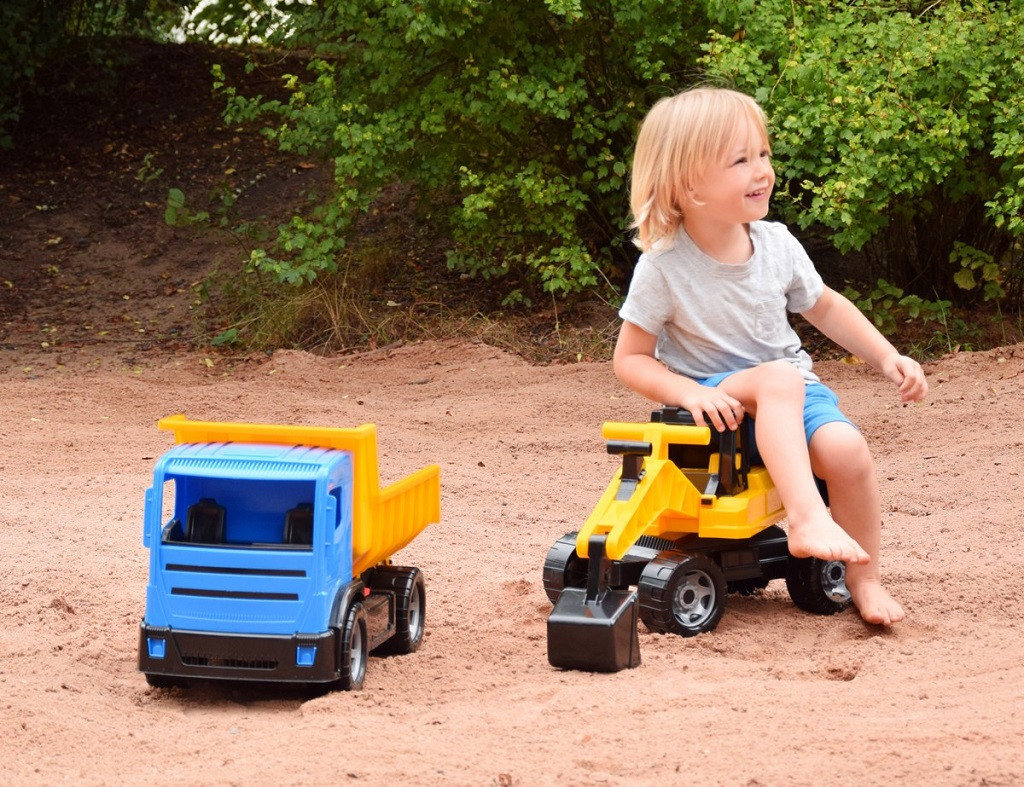 Ez a nagyméretű markoló tökéletes választás homokozós játékhoz. A gyerekek akár rá is ülhetnek, miközben irányítják a kart.