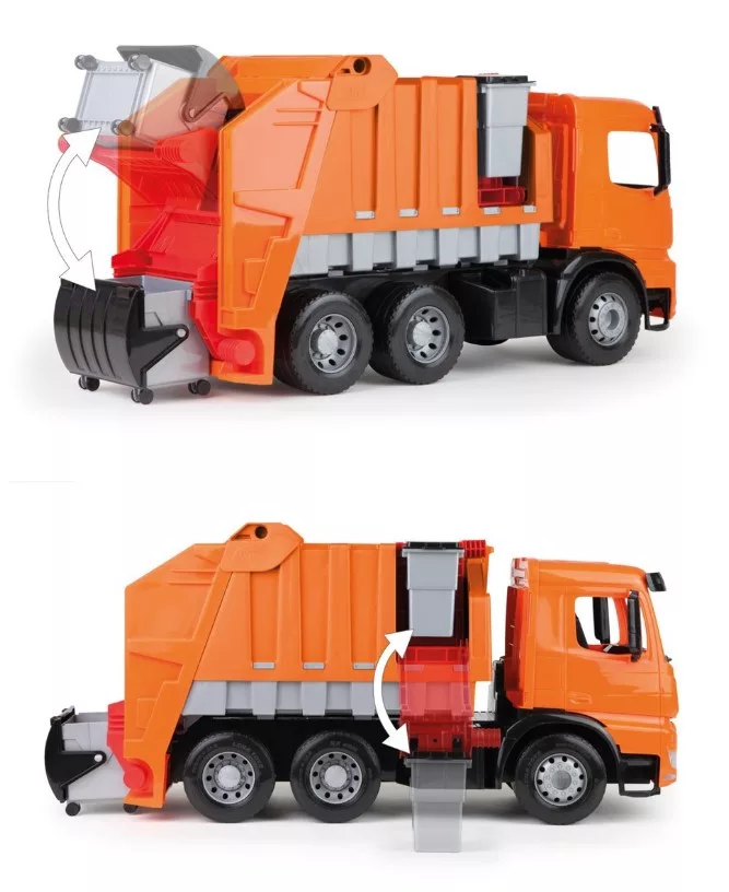 Plně multifunkční popelářské auto s odnímatelnou popelnicí a kontejneremna kolečkách. Vyroben z kvalitního plastu. Lze použít jako odrážedlo. Statická nosnost 100kg.  Hlavní vlastnosti: splňuje požadavky EU na bezpečnost hračekplně mechanicky funkčnívyrobeno z kvalitního, odolného plastunosnost 100kg