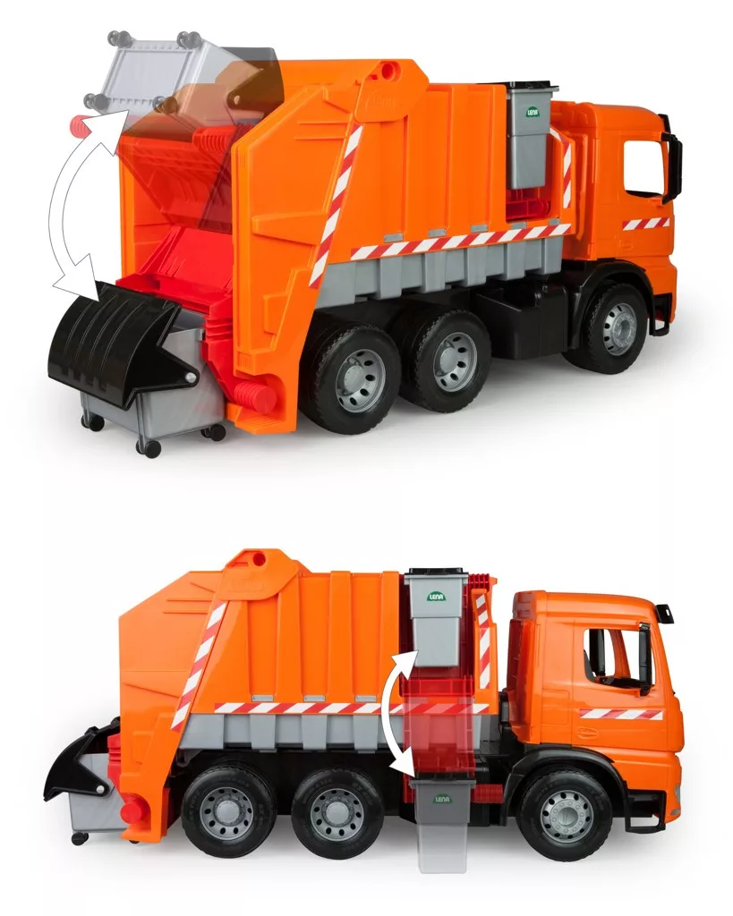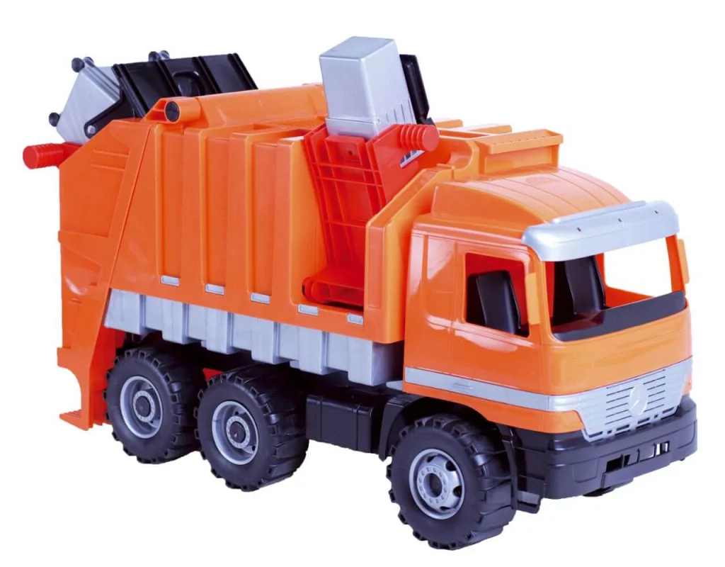 Plne multifunkčné smetiarske auto s odnímateľnou nádobou a kontajnerom na kolieskach. Vyrobené z kvalitného plastu. Hlavné vlastnosti: plne mechanicky funkčnýs odnímateľnou popolnicou a kontajneromvysoko kvalitný plast