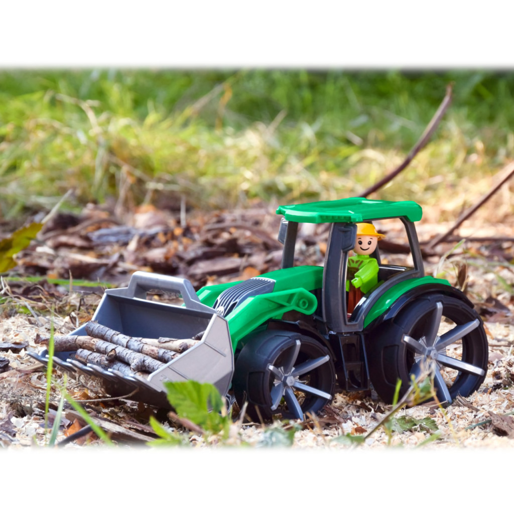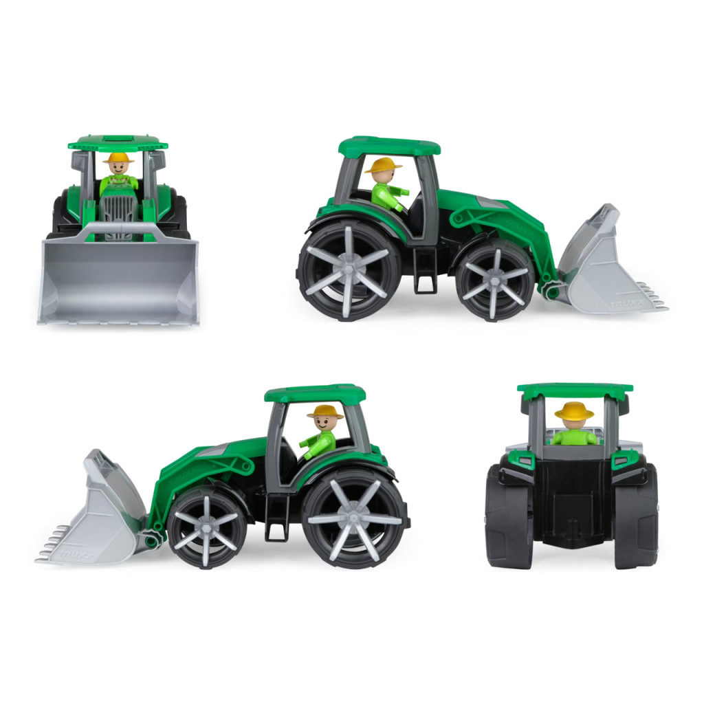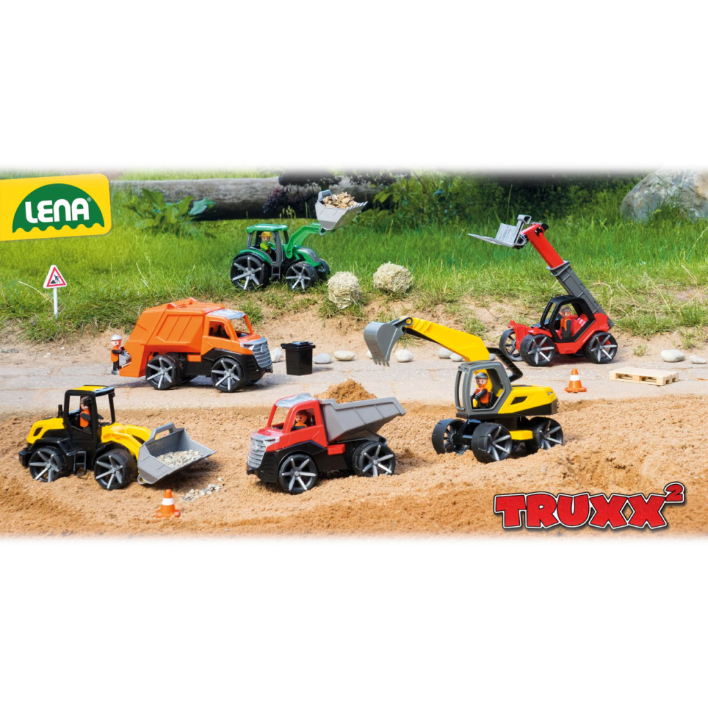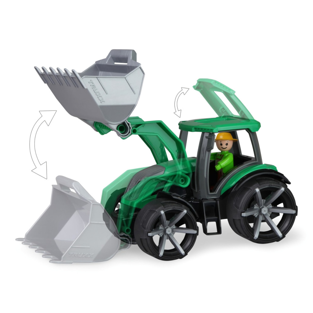 Atraktívny traktor zo série TRUXX 2 je veľmi pevný a odolný, vhodný aj na hranie vonku, na pieskovisku. Je vybavený figúrkou usmievavého vodiča a vďaka odklopnej streche je priestor kabíny ľahko prístupný hrám. Funkčná lopata je pre ľahkú manipuláciu vybavená madlom. Hračka je vyrobená z nezávadného plastu, dodávaná v pestrofarebnej krabici s priehľadom.   Hlavné vlastnosti:figúrka vodiča, prístupná kabínafunkčná, ľahko ovládateľná lopatapevné a odolné prevedenie