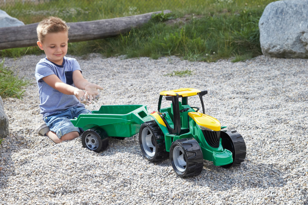 Kvalitne spracovaný traktor s vozíkom bol navrhnutý a vyrobený tak, aby zodpovedal požadovanému modernému vzhľadu, funkčnosti, odolnosti, kvalitnému spracovaniu, maximálna hracie hodnote. Hlavné vlastnosti: spĺňa požiadavky EÚ na bezpečnosť hračiekvyrobené z kvalitného, ​​odolného plastupodporuje kreativitu a predstavivosť