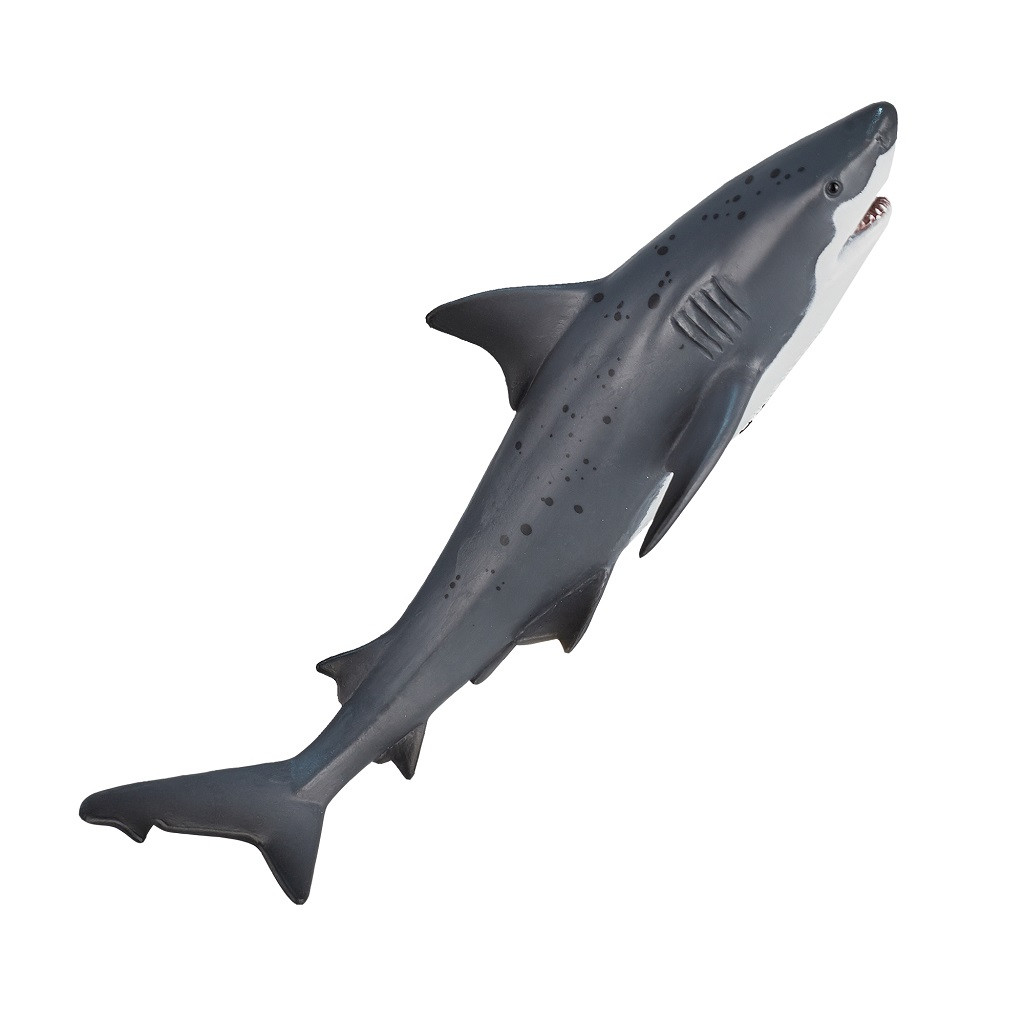 Nyitott állkapoccsal és jellegzetes torpedótesttel a tenger egyik legismertebb ragadozója. A kézi festés csúcséles fogsort és kontrasztos hasoldalt emel ki. Ftalátmentes, strapabíró kivitel a biztonságos játékért. Kiválóan szemlélteti a táplálékháló csúcsát és a ragadozói viselkedést. Látványos, figyelemfelkeltő darab. Méretkategória: extra nagy.