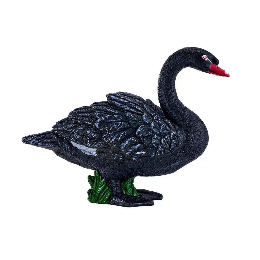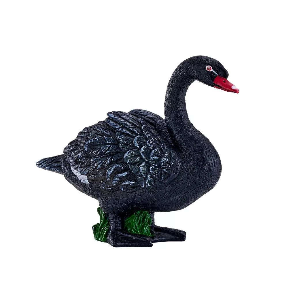 A fekete hattyú különleges, drámai szépség a vizes jelenetekben. Piros csőre kontrasztosan kiemelkedik a sötét tollazatból. Stabil, masszív figura aktív játékhoz is. Jól mutat a fehér vagy bütykös hattyú mellett kontrasztpárként. Tanuláshoz is inspiráló az ausztrál élővilágról. Könnyen tisztítható, tartós anyagból készül. Polcdíszként modern, elegáns hatást kelt.
