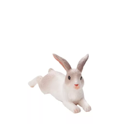 Pihenő, fekvő pózban megmintázott nyuszi kedves arcvonásokkal. A kézi festés puha hatású bundát és finom részleteket ad. Ftalátmentes, biztonságos anyagból készül. Kiváló társ húsvéti, tavaszi vagy erdei jelenetekben. Fejleszti a gyengédséget és a gondoskodó szerepjátékot. Méretkategória: kicsi.