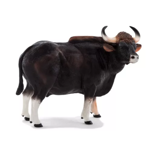 Impozáns ázsiai vadbivaly erőteljes testtel és ívelt szarvakkal. A kézi festés sötétbarna árnyalatokat és izomrajzolatot emel ki. Ftalátmentes, extra masszív kivitel, kiállításra és játékra egyaránt. Kiválóan szemlélteti a vadon élő szarvasmarhafélék változatosságát. Szavanna- és dzsungel-diorámák kulcsszereplője. Méretkategória: XXL.