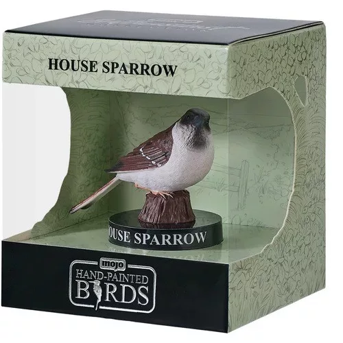 Mojo házi veréb figura díszdobozban - természetközeli madárfigura