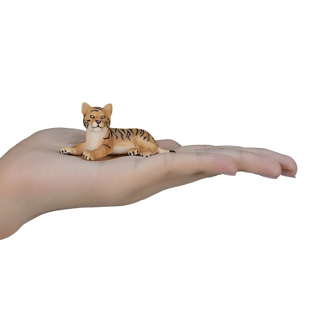 Pihenő pózban megformált kölyök, amely meghitt hangulatot visz a jelenetekbe. A kézi festés puhább tónusokkal és kölyök-arányokkal dolgozik. Ftalátmentes, tartós műanyag - biztonságos a kicsiknek is. Kiváló pár a felnőtt tigrishez családi kompozícióhoz. Tanít az állati gondoskodásról és a ragadozók életéről. Méretkategória: kicsi.
