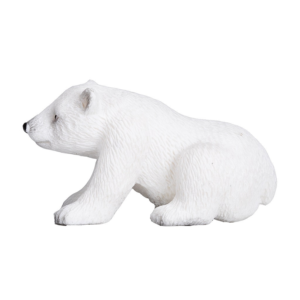 Bájos, ülő testtartású bocs, amely azonnal belopja magát a szívekbe. A kézi festés puha hatású szőrzetet és figyelő tekintetet ad. Ftalátmentes, tartós műanyagból készült - biztonságos játékhoz. Családi jelenetekhez és tanuláshoz ideális. Szuper pár a felnőtt jegesmedvéhez. Méretkategória: kicsi.