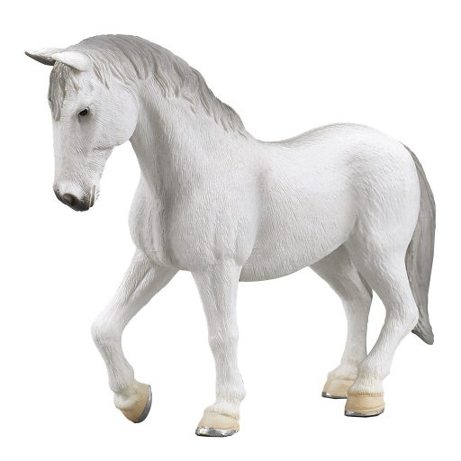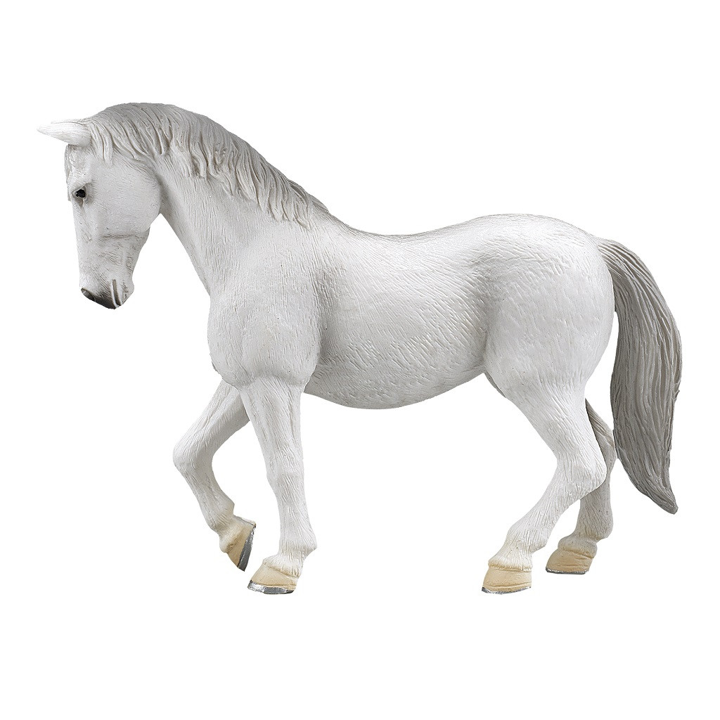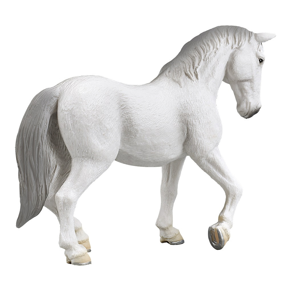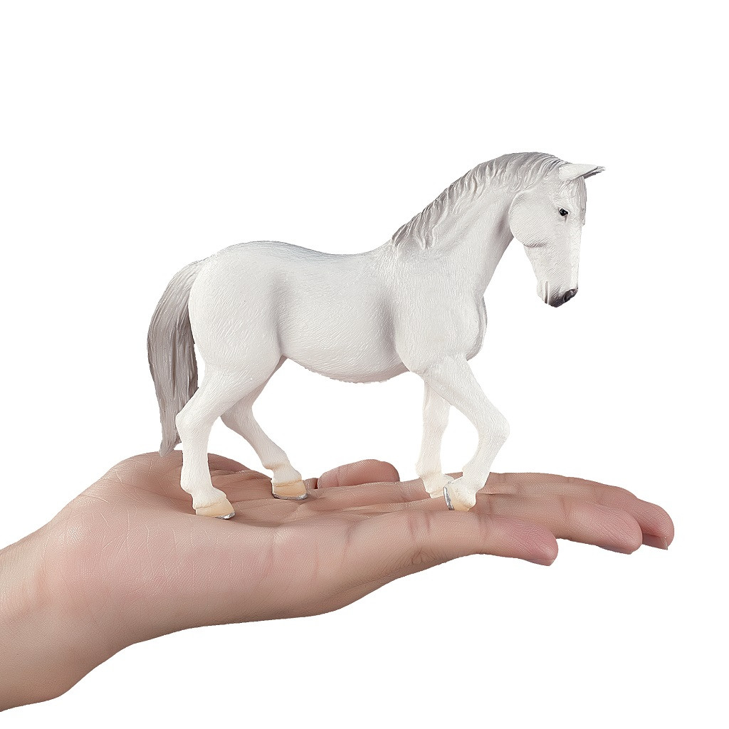 A lipicai kanca elegáns, kiegyensúlyozott pózban áll, finom fejtartással. A hófehér szőrzet és a selymes sörény szépen árnyékolt festést kapott. Ideális dísz- és díjlovas jelenetekhez, kocsiba fogva is hiteles. A tiszta vonalak miatt a kisebb gyerekek is könnyen megfogják. Strapabíró, biztonságos anyagból készült a mindennapi játékra. Stabil a talajon, nem billeg, polcon is látványos. Gyűjtőknek és lórajongó gyerekeknek egyaránt remek választás.