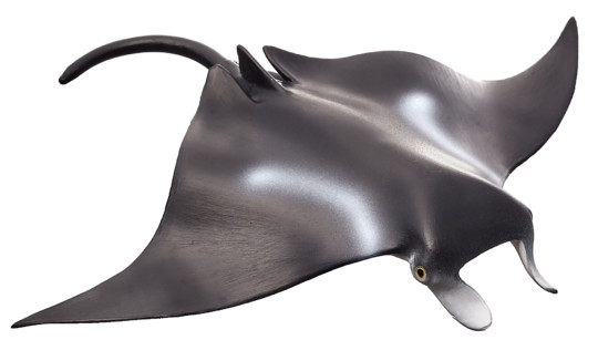 A tenger óriási „szárnyasa” széles korongtesttel és kecses mozgással. A kézi festés selymes fekete-szürke átmeneteket ad. Ftalátmentes, időtálló kivitel, ami jól bírja a játékot. Kiváló téma a szűrő-táplálkozás és a planktonvilág megismeréséhez. Nagy felületű diorámákhoz ideális. Méretkategória: nagy.