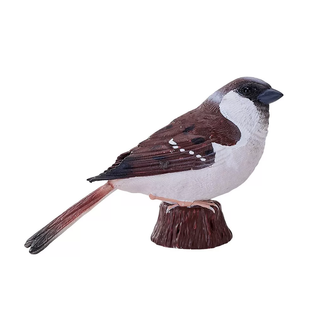 A veréb mindennapi ismerősünk, és így a játéktér is otthonosabb lesz vele. Visszafogott, mégis részletes festést kapott. Kerti, városi jelenetekhez kiváló. Beszélgetésindító a városi madarakról és élőhelyeikről. Könnyű, strapabíró figura a mindennapokra. Polcon is kedves, semleges darab. Gyűjteményekben jó „összekötő” faj.