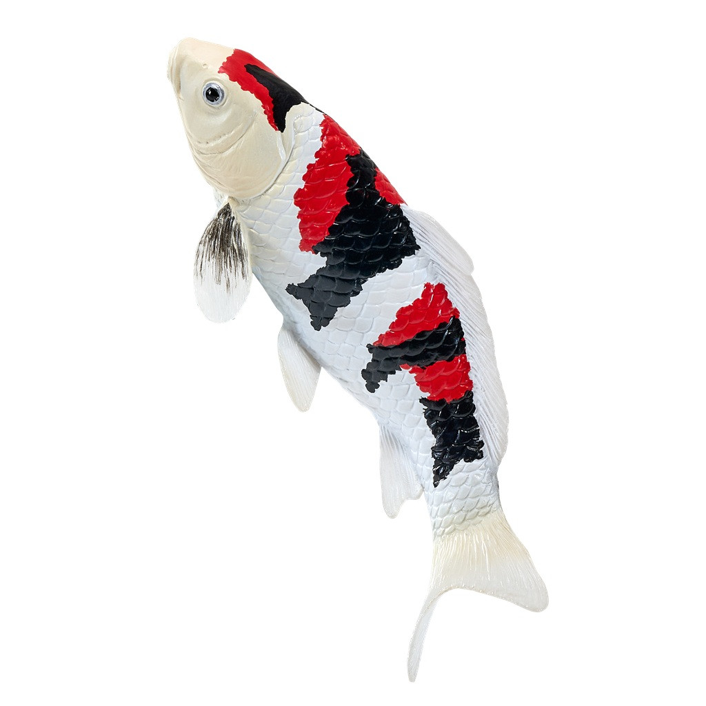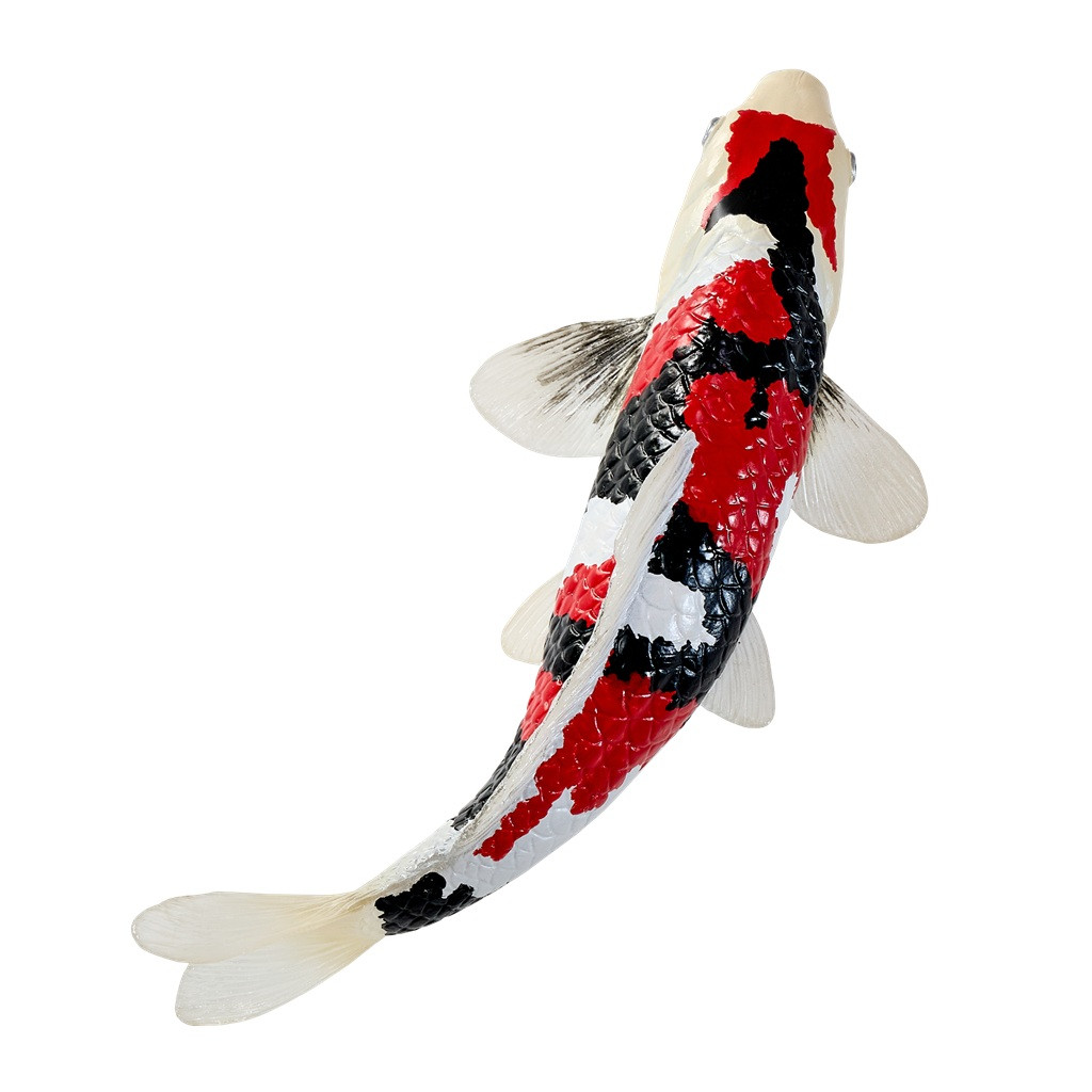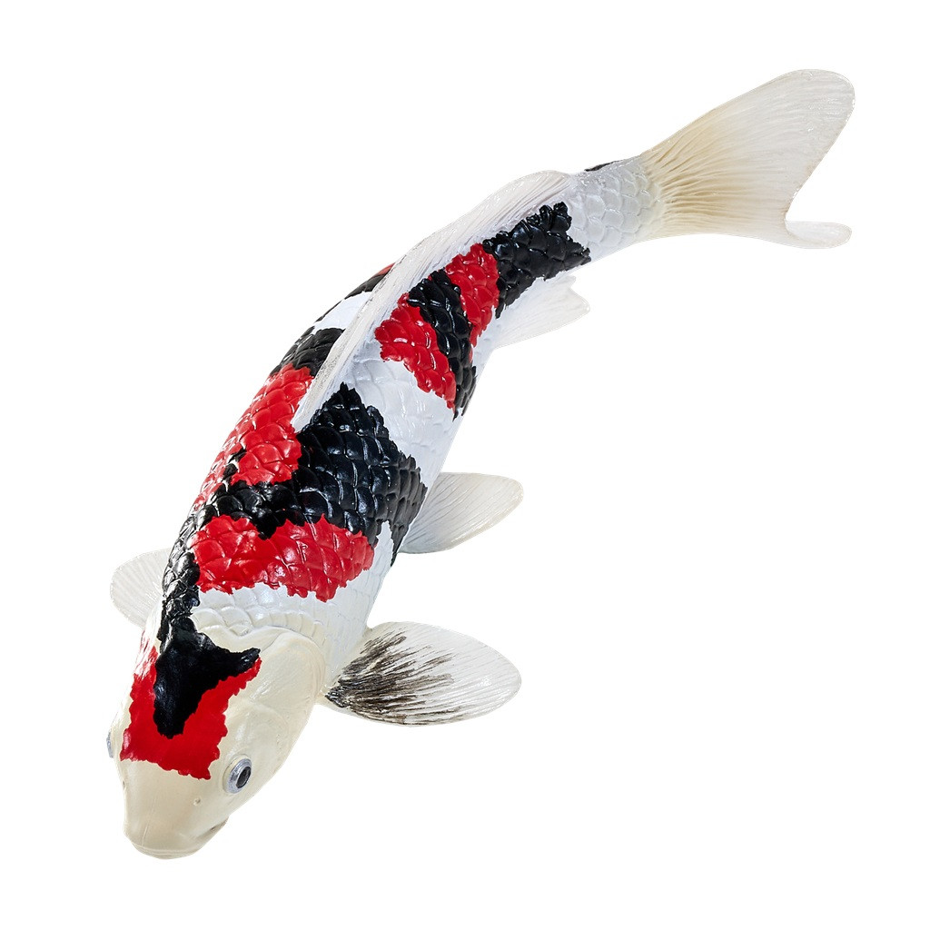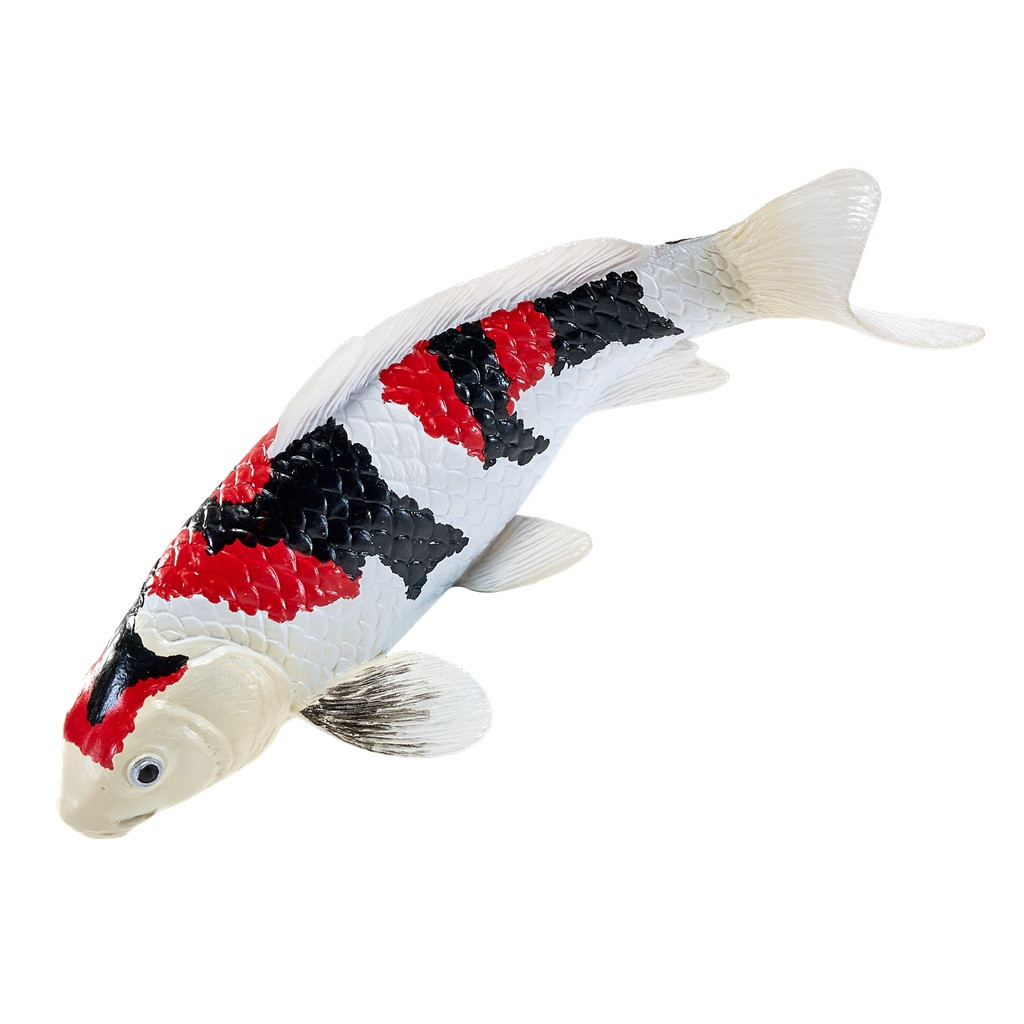 Klasszikus háromszínű koi fekete alapon piros-fehér mintázattal. A kézi festés precízen osztja el a foltokat, hogy polcon és játékban is harmonikus legyen. Ftalátmentes, masszív anyagból készül a tartósságért. Kiválóan szemlélteti a koi-színváltozatok közti különbségeket. Gyűjteményben látványos központi szereplő.