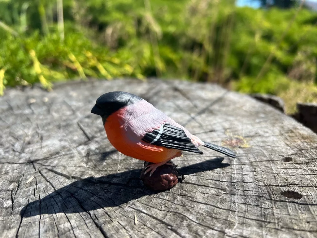 A süvöltő élénk színei miatt azonnal felismerhető. Aprólékos festése kiemeli a mell és a szárnyak mintázatát. Téli jelenetek, etetők és erdei történetek kedvelt szereplője. Segít beszélgetni a madarak téli táplálkozásáról. Strapabíró anyagból készült a hosszan tartó használathoz. Dísznek is csinos a polcon. Kiváló kiegészítője egy madaras készletnek.