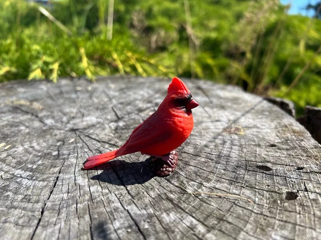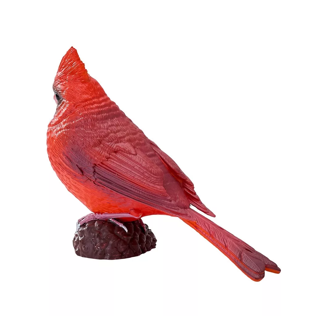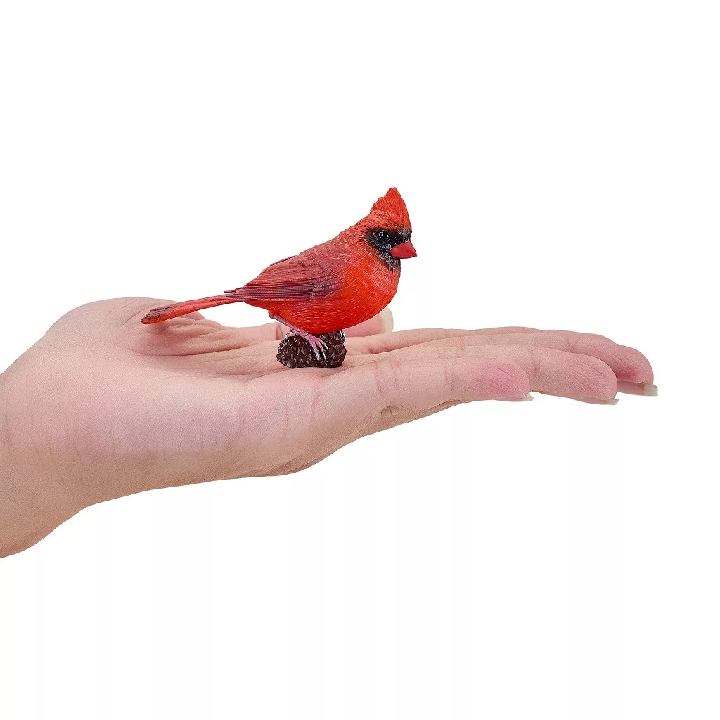 A vörös kardinál élénk színeivel igazi amerikai ikon. A bóbitás fej és a fekete „maszk” szépen kidolgozott. Polcdíszként messziről is feltűnő. Madaras játékkészletekbe különleges színt visz. Tartós, kézzel festett figura. Beszélgetésindító az észak-amerikai élővilágról. Ajándéknak különleges, egzotikus választás.