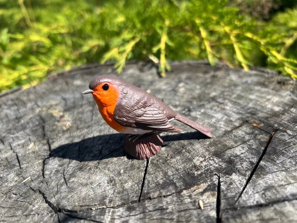 A vörösbegy kedves, ismerős kerti madár, amely barátságos hangulatot visz a játékba. A narancsvörös mellfolt szépen kiemelkedik a festésen. Kompakt mérete miatt útra is könnyű magaddal vinni. Remek kiegészítő erdei és kerti diorámákhoz. Segít megismerni a hazai madárfajokat. Strapabíró, biztonságos anyagból készült. Gyűjteményben is üde színfolt.