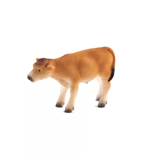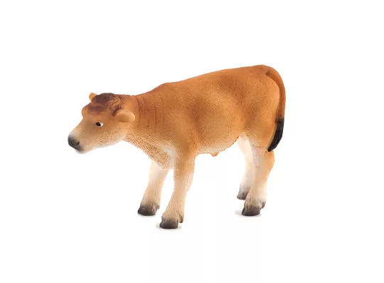 Bájos jersey borjú, álló pózban, jellegzetes, világos bundával. Kézi festésű, részletgazdag kidolgozás a valóság hű másáért. Ftalátmentes, tartós műanyagból készül, kis kezekhez ideális. Varázslatos kiegészítő a jersey tehén mellé. Szerepjátékhoz és iskolai projekthez is inspiráló. Méretkategória: közepes.