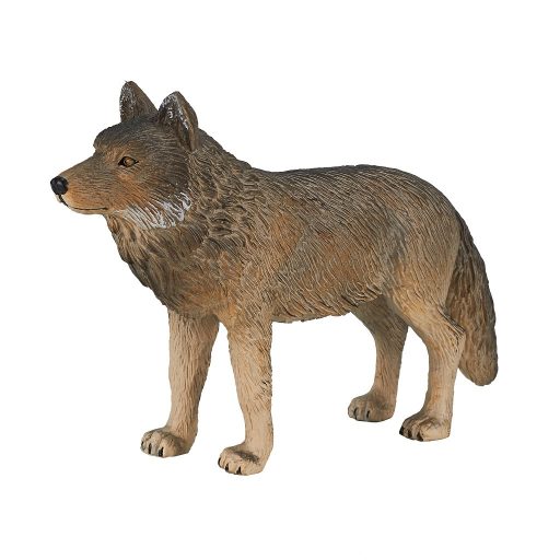 Magabiztos, figyelő testtartásban álló csúcsragadozó. A kézi festés természetes szürkés-barna tónusokkal ad valósághű bundát. Ftalátmentes, időtálló kivitel, amely bírja a történetmesélő játékokat. Jól kombinálható más erdei állatokkal és zsákmányfigurákkal. Tanít a falkaviselkedésről és a vadon törvényeiről. Méretkategória: közepes.