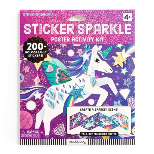 Ragadj meg egy varázslatos kalandot az unikornisok földjén a Mudpuppy csillogó matricás poszterével! A kihajtható panorámaposztert több mint 200 holografikus, szikrázó matrica díszítheti, melyekkel a gyerekek saját fantáziájuk szerint formálhatják az unikornisos jelenetet.