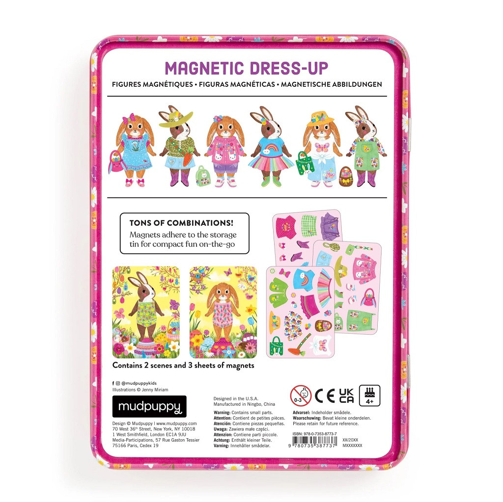 Ponorte sa do sveta módy s touto magnetickou sadou, ktorá bola navrhnutá na to, aby inšpirovala deti ku kreativite. Preskúmajte svoj zmysel pre štýl a predstavivosť a nakombinujte nespočetné množstvo módnych outfitov podľa svojej vlastnej fantázie. Hra obsahuje 2 ilustrované scény na pozadí, v jednej časti je zajac, v druhej králik, a obaja čakajú na svoje obliekanie. K dispozícii je na 3 kartách viac ako 40 magnetov s pestrofarebným oblečením a doplnkami. Kombinujte všetko podľa svojich vlastných predstáv. Vhodné na doma aj na cesty. Hlavné vlastnosti: praktická kovová krabičkaviac ako 40 magnetov na 3 kartách2 ilustrované scény pozadia so zajačikmisada vhodná pre hru na cestách