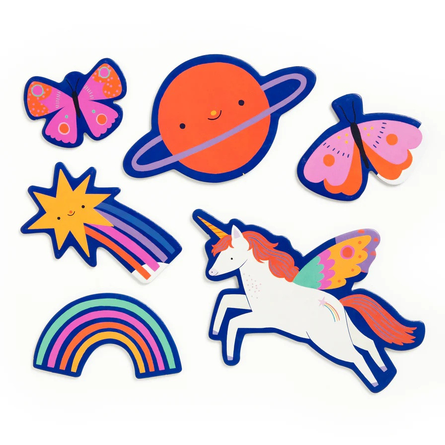 A 25 darabból álló puzzle egy különleges, űrbéli jelenetet ábrázol szivárványos unikornisokkal, bolygókkal és csillagokkal. Hat darab extra alakú elem még játékosabbá és izgalmasabbá teszi az összerakást. A padlópuzzle nemcsak szórakoztató, de fejleszti a kézügyességet, a szem-kéz koordinációt és a formafelismerést is.