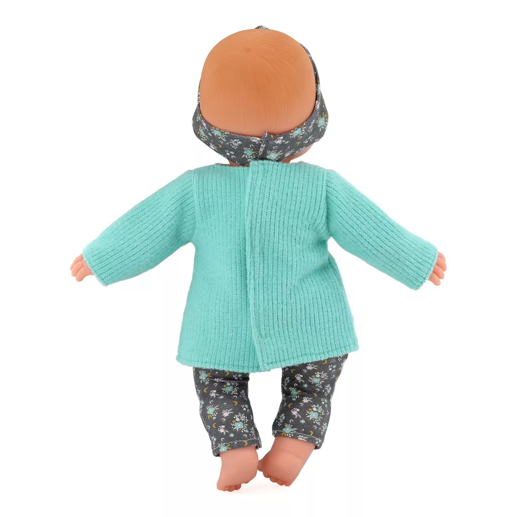 A Gipsy baba meleg kardigánnal, kényelmes nadrággal és csinos fejpánttal érkezik – készen a sétára és a babakocsis kalandokra. A puhán párnázott test ölelősen kényelmes, a vinil fej és végtagok pedig szépen formáltak. A csukódó szemek és a finom vonások megnyugtató, élethű hatást keltenek. Öltöztetés közben fejlődik a kézügyesség, a sorrendiség és az önállóság. A színek és minták ösztönzik a kreatív történetmesélést. Kisebbek számára is könnyen kezelhető darab. Európában készült, minőségi kivitelben.