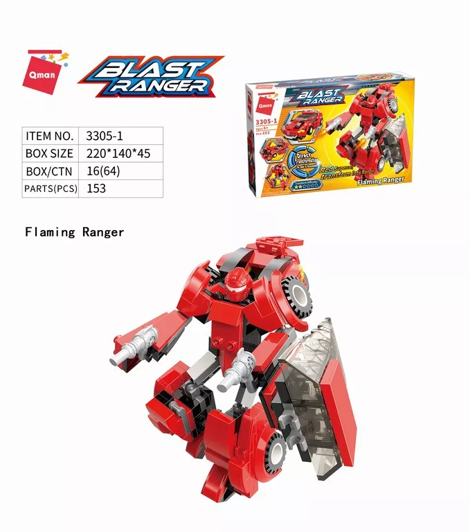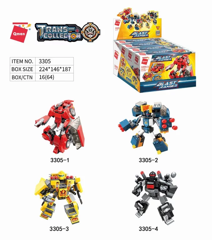 Qman Blast Ranger 4 darabos készlet - átalakítható robotok és járművek