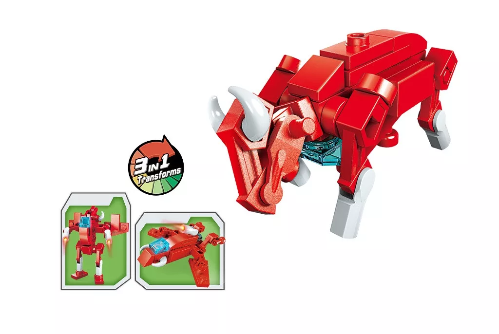 Qman Combat Team vad bika 3 az 1-ben - kreatív mini építőjáték
