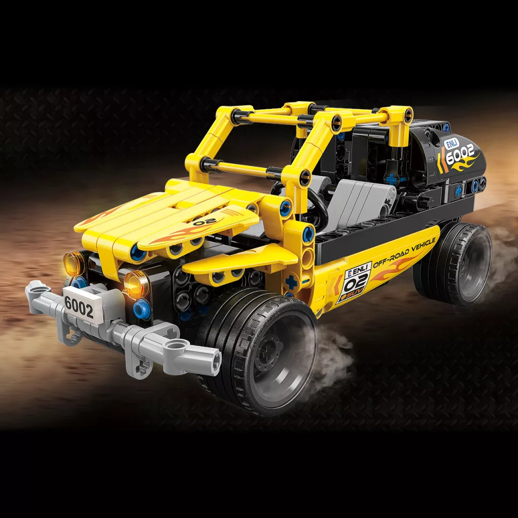 A versenyhangulatot a mellékelt matricák is erősítik, így a modell még látványosabb lesz. Jó választás, ha gyermeked szereti a lendületes, autós építőjátékokat.