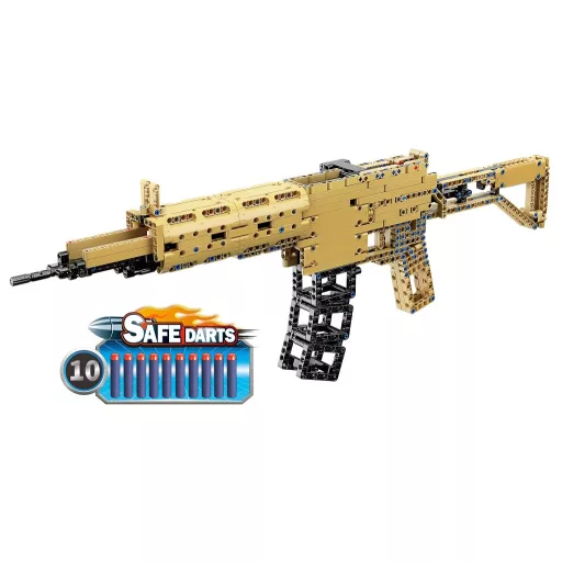 Ez az összetettebb építőkészlet remek választás a részletes modellek kedvelőinek. A sok elemből álló szett hosszabb, elmélyült építést kínál, a kész modell pedig puha habszivacs lövedékek használatára kialakított.