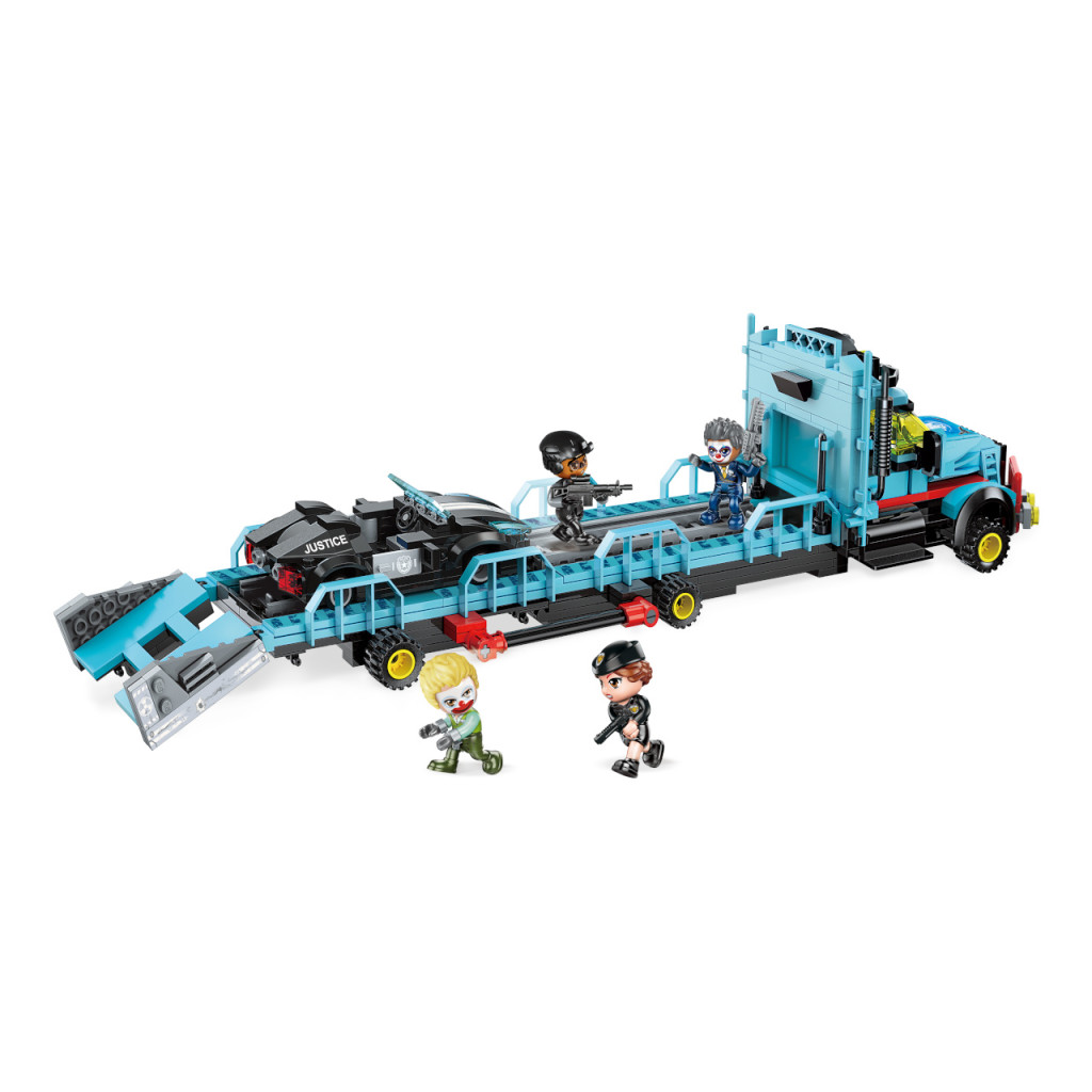 Zastavte nákladiak špinavých zlodejov áut pomocou policajnej jednotky v rýchlom aute. Títo banditi lúpia vo veľkom, ich nákladiak môže viezť korisť na dvoch poschodiach! Vysoko variabilné stavebnice Qman z pestrofarebných plastových kociek je možné kombinovať s podobnými stavebnicami mnohých ďalších významných výrobcov. Vyrobené z kvalitného, nezávadného a odolného, ABS plastu. Balené v pestro potlačenej papierovej krabičke.   Hlavné vlastnosti:121 dielikov a 2 figúrkysklápací nákladový priestorkompatibilné so stavebnicami ďalších výrobcov