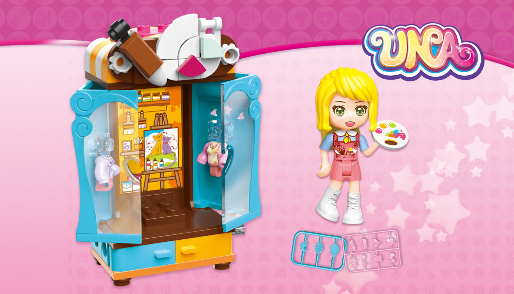 Osem variantov stavebníc skríň s tematicky patriacim vybavením a motívy, každá je vybavená jednou dievčenské figúrkou. Vo svojej prepychové šatníkovej skrini vždy nájdete, čo hľadáte, či už chcete byť stewardkou, doktorkou, alebo maliarkou. Vyberte si a postupne zbierajte: Šatníková kříň stewardky 34011-1 (obsahuje 83 dielikov a 1 minifigúrku)Šatníková kříň doktorky 34011-2 (obsahuje 81 dielikov a 1 minifigúrku)Šatníková kříň fotografky 34011-3 (obsahuje 83 dielikov a 1 minifigúrku)Šatníková kříň maliarky 34011-4 (obsahuje 83 dielikov a 1 minifigúrku)Šatníková kříň štylistky 34011-5 (obsahuje 95 dielikov a 1 minifigúrku)Šatníková kříň speváčky 34011-6 (obsahuje 82 dielikov a 1 minifigúrku)Šatníková kříň pekárky 34011-7 (obsahuje 100 dielikov a 1 minifigúrku)Šatníková kříň hostesky 34011-8 (obsahuje 88 dielikov a 1 minifigúrku) Hlavné vlastnosti: netoxický ABS plast