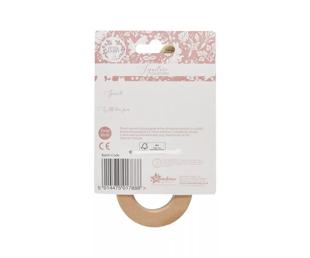 Rainbow Flopsy nyuszi csörgő - fa gyűrűvel - JátékManufaktúra
