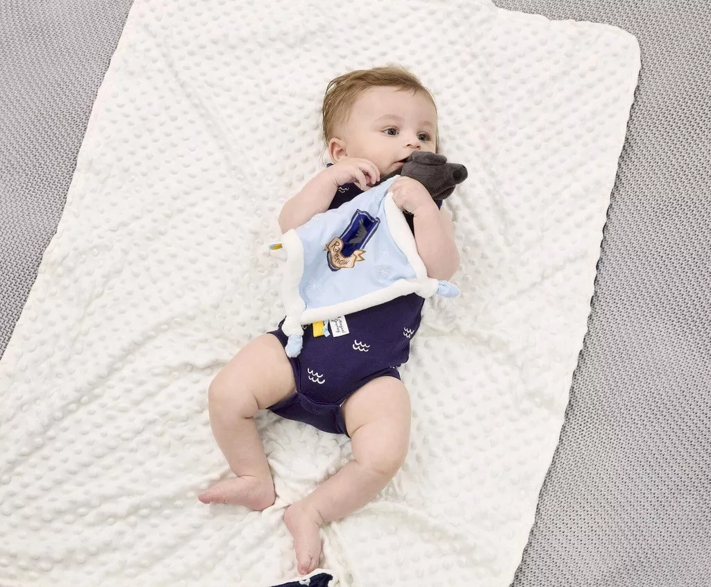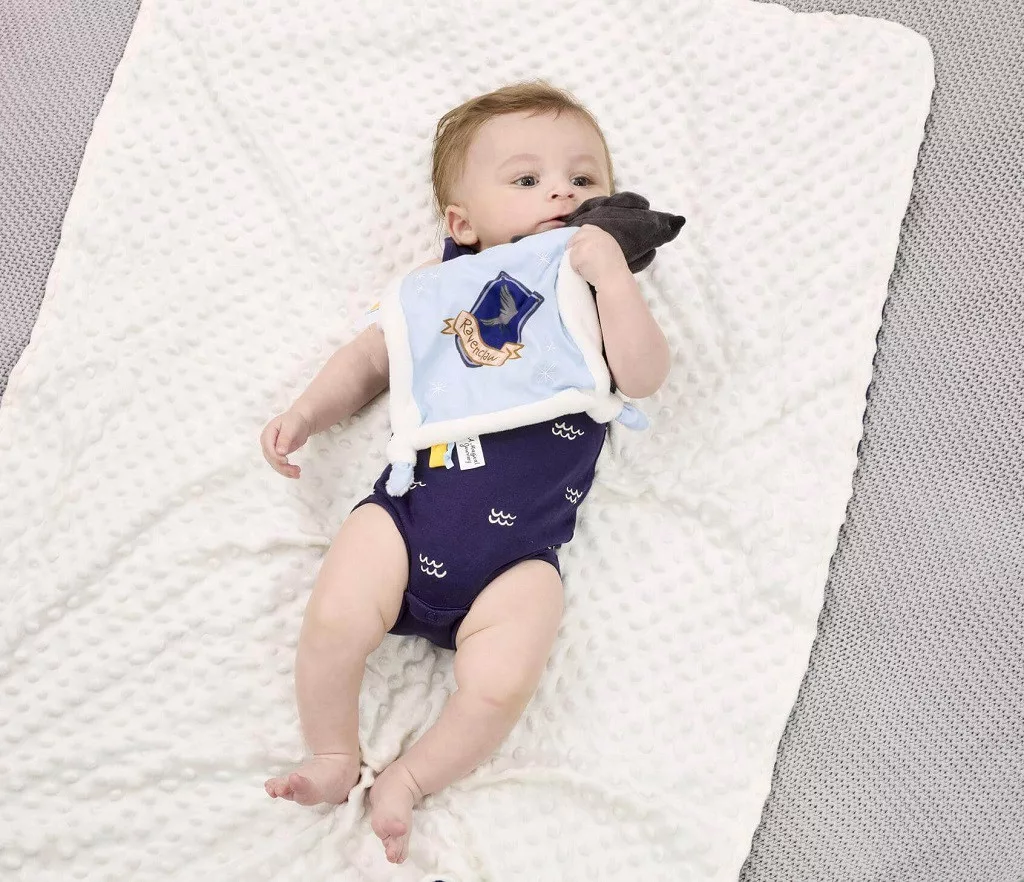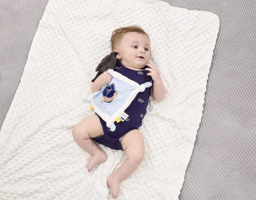 Hollóhát ház ihlette nyunyóka hollóval, házjelvénnyel és hímzett csillagokkal. Puha címkék és csomózott sarkok segítik az érzékszervi játékot. Kiváló minőségű plüssből készült, újszülött kortól ajánlott.