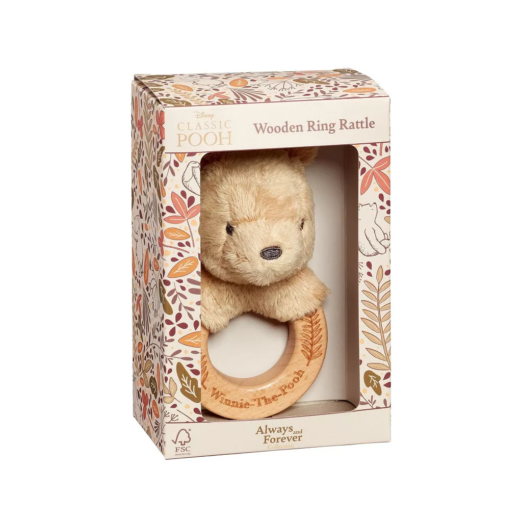 Ez a klasszikus stílusú csörgő Micimackóval egy FSC® tanúsítvánnyal rendelkező fa gyűrűre van rögzítve. A puha plüss és a finom csörgőhang segíti a szenzoros fejlődést. Újrahasznosított anyagokból készült, így környezetbarát választás. Díszdobozban érkezik, tökéletes ajándék újszülötteknek.