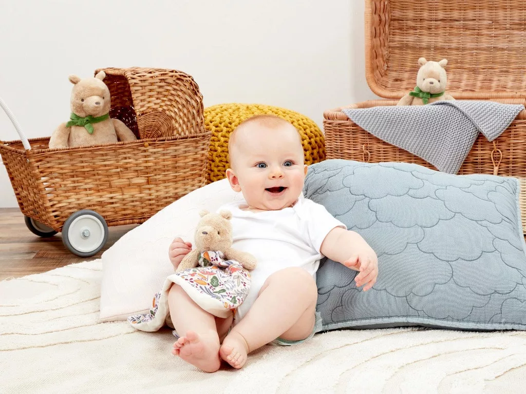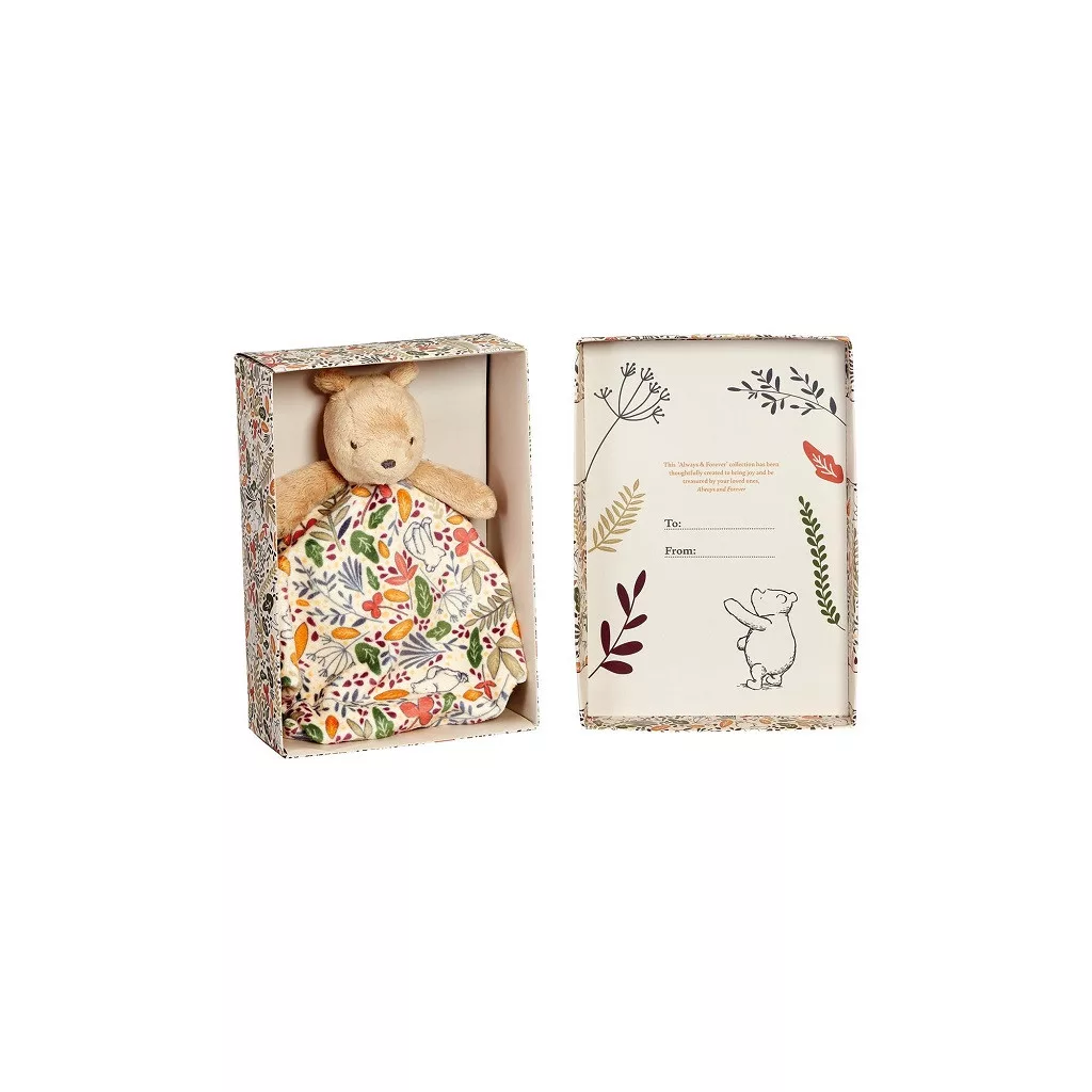 Fenntartható anyagokból készült nyunyóka Micimackóval. Illusztrált ajándékdobozban érkezik, ideális újszülötteknek.