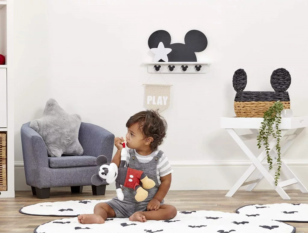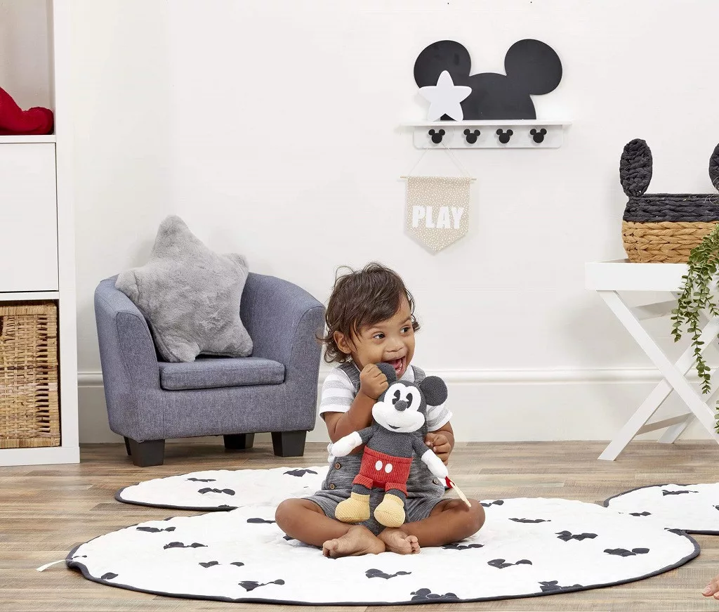 19 cm-es Mickey figura csillag alakú rágókával, különféle textúrákkal. Segíti a szenzoros és motorikus fejlődést, már születéstől ajánlott.