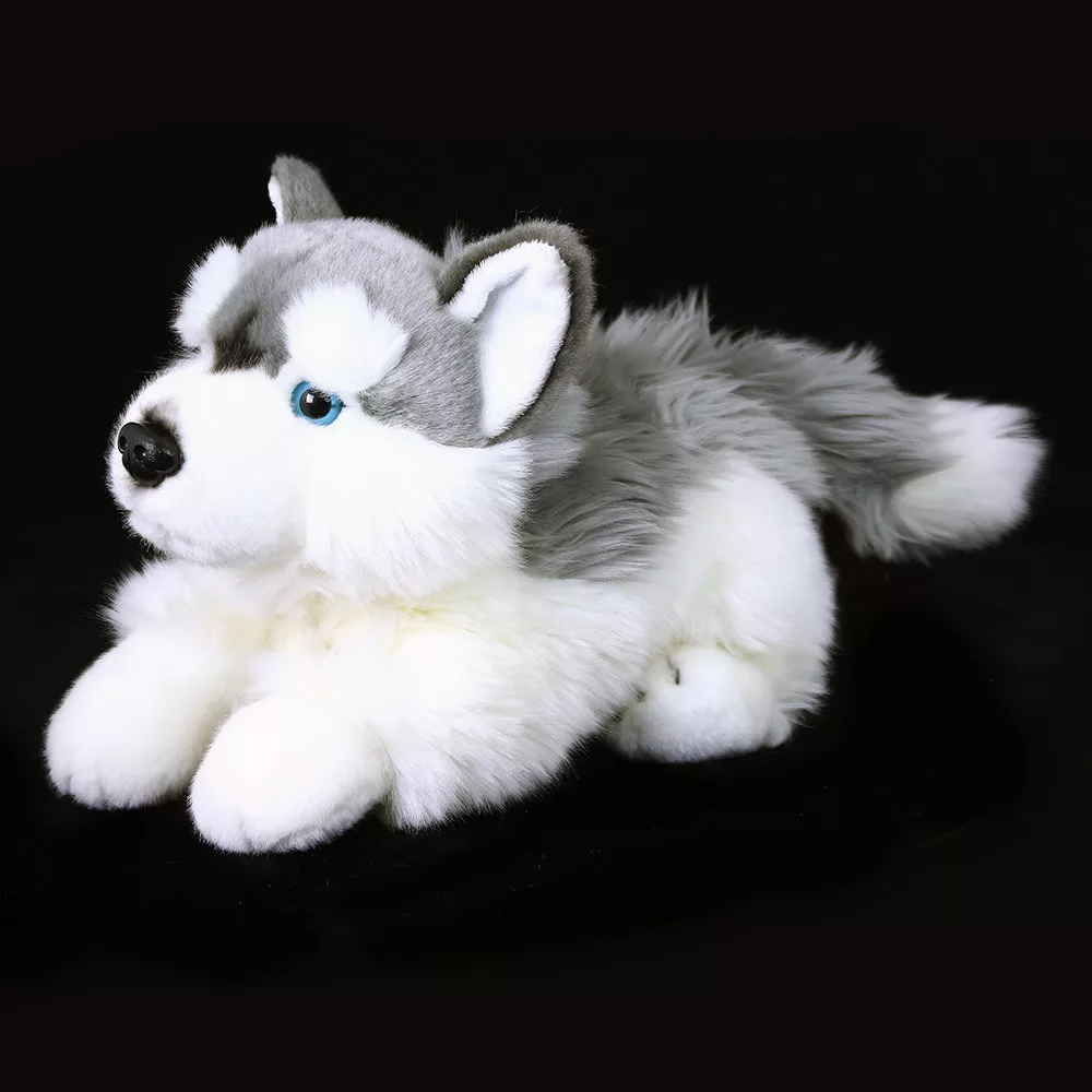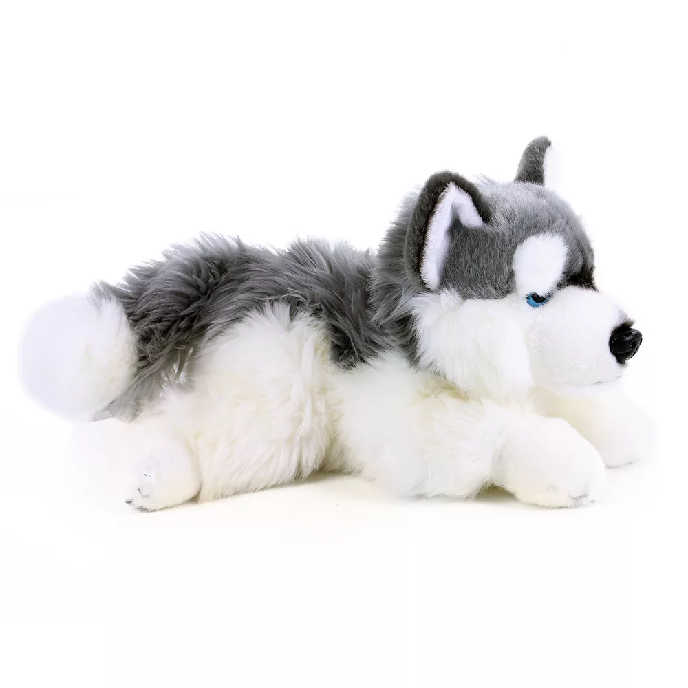 Ez a fekvő husky kutya igazi kedvenc lesz a gyerkőcök között! Puha bundája és élethű megjelenése miatt szinte hívogat egy jó kis ölelésre vagy közös játékra.