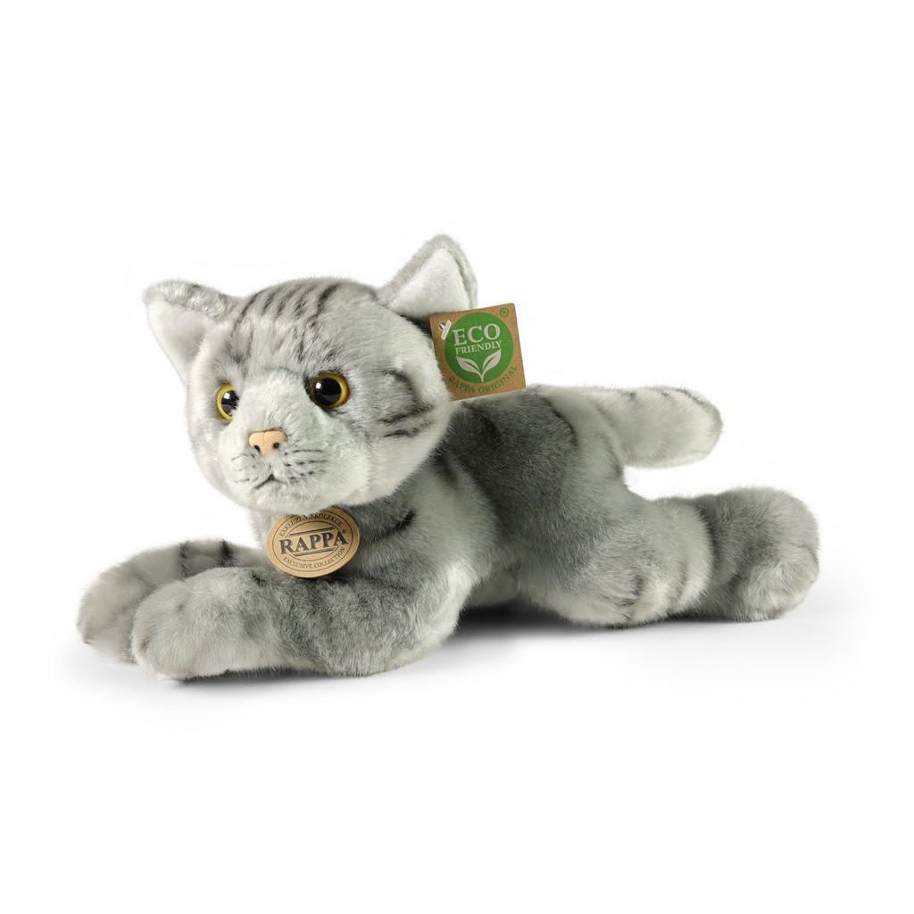 Rappa Plüss szürke fekvő cica 30 cm ECO-FRIENDLY - JátékManufaktúra