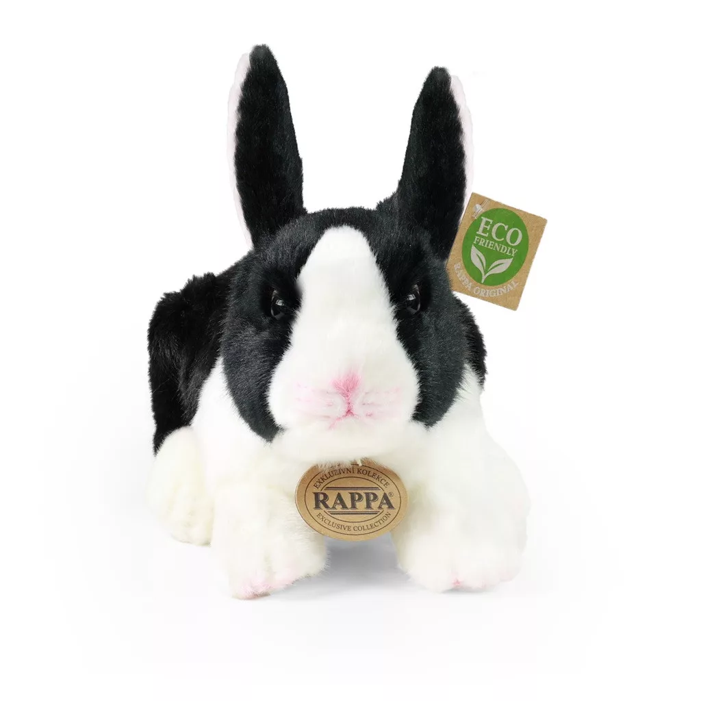 Plüss nyuszi fekvő fekete-fehér 23 cm ECO-FRIENDLY